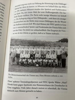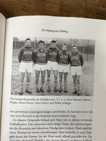 He resumed his football career with First Vienna FC, joining the senior team in 1950. Playing on the right wing, he won the Austrian championship in 1955 and later transferred to Austria Wien. He also represented Austria at international level in 1953 and 1954. As professional football alone could not provide a living at the time, Menasse worked for nearly 50 years as a press officer for U.S. film companies, putting his language skills to good use.
